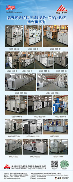 無錫市聯(lián)眾控濕節(jié)能設備有限公司成立于2004年2月,是一家長期致力于把空氣吸附分離技術應用于空氣處理設備的科技型中外合作 企業(yè),主要研發(fā)生產(chǎn)轉輪除濕機組、熱泵除濕機組、空氣與空氣熱 能交換回收機組、蒸發(fā)冷卻空調機組、有機廢氣凈化處理機組等非 標空氣處理設備。隨著生產(chǎn)規(guī)模的不斷壯大和產(chǎn)業(yè)化的精細分工, 聯(lián)眾公司與2011年10月在江蘇省宜興市萬石鎮(zhèn)工業(yè)園茶亭路8號, 一期投資5000萬元,置地25畝、建標準工業(yè)廠房10000平方米和辦 公樓3000平方米,重新注冊成立江蘇聯(lián)眾聯(lián)勝節(jié)能設備有限公司。 企業(yè)領導層決定確立江蘇聯(lián)眾聯(lián)勝公司以研發(fā)生產(chǎn)蒸發(fā)冷卻空調機 組、有機廢氣凈化處理機組等大型節(jié)能環(huán)保空氣處理設備為主;而無錫聯(lián)眾控濕公司則在無錫繼續(xù)以研發(fā)生產(chǎn)轉輪除濕機組、熱泵除濕機組、空氣與空氣熱交器為主。在國內(nèi)暖通空調工程領域,聯(lián)眾控濕公司研發(fā)各類轉輪除濕機的技術能力、生產(chǎn)各類轉輪除濕機的 裝備制造工藝水平處于本行業(yè)前沿。